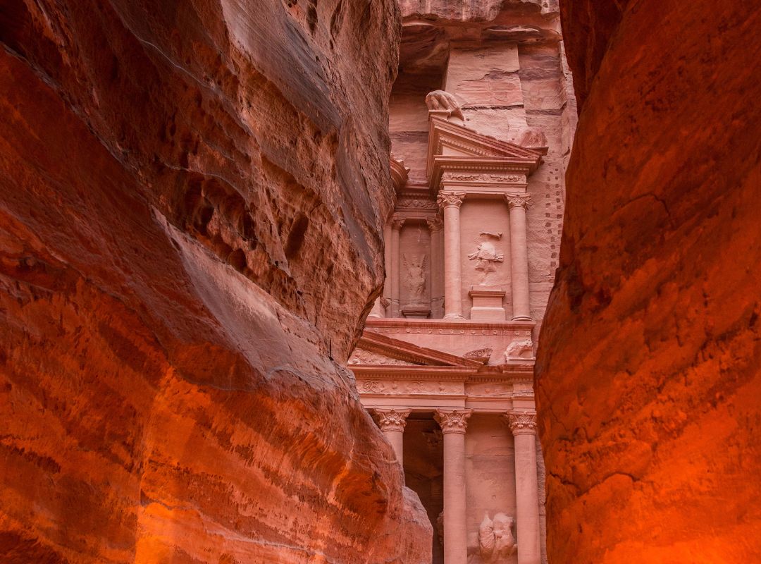 Opcionalmente, podrás disfrutar de Petra de Noche, iluminada por más de 1.500 velas, creando una experiencia mágica e inolvidable.