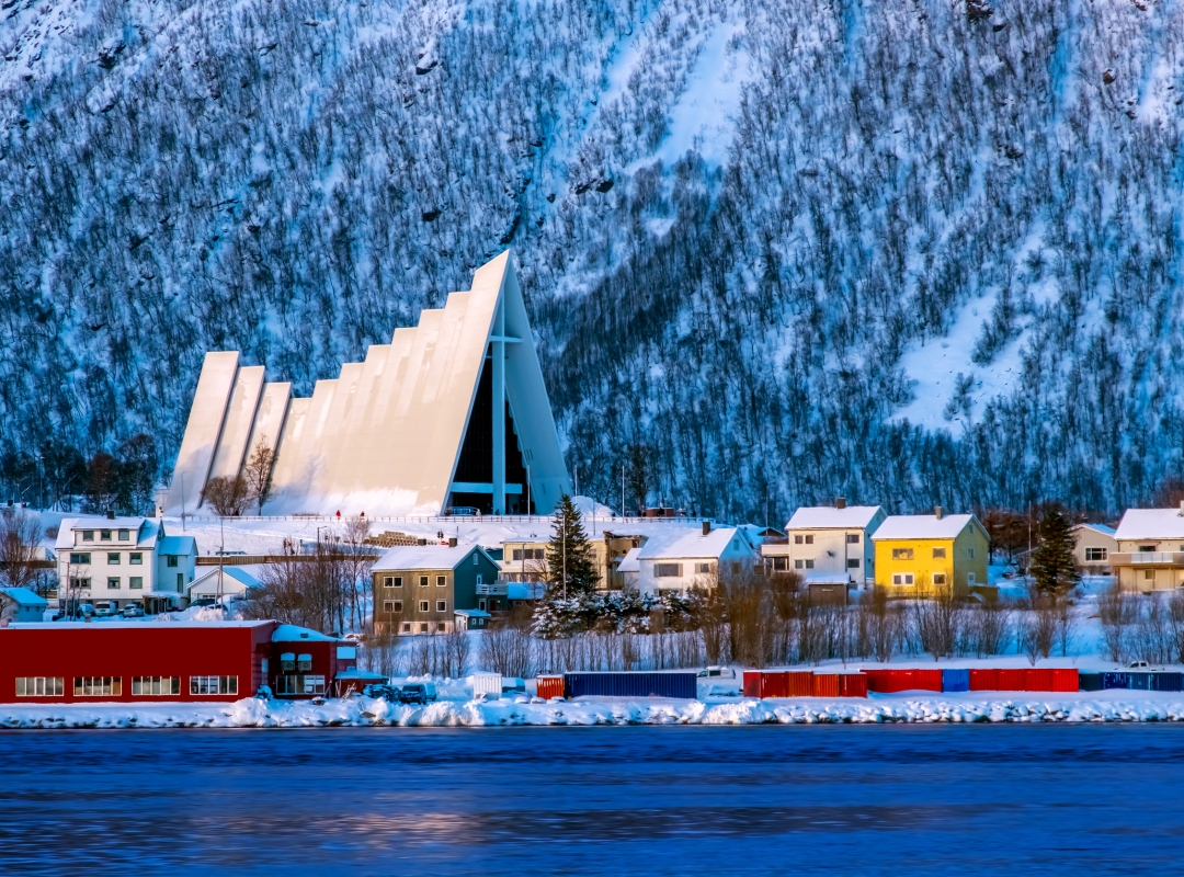 Por la tarde, la ciudad nos llama a explorarla. Junto a nuestro guía, realizaremos un paseo panorámico a pie que nos revelará el carácter dual de Tromsø: un corazón urbano vibrante anclado en un paisaje de inmensa belleza natural, con picos montañosos y fiordos azules. Caminaremos entre edificios históricos y modernos, descubriendo la rica herencia que envuelve su puerto y admirando la icónica Catedral del Ártico desde el exterior.